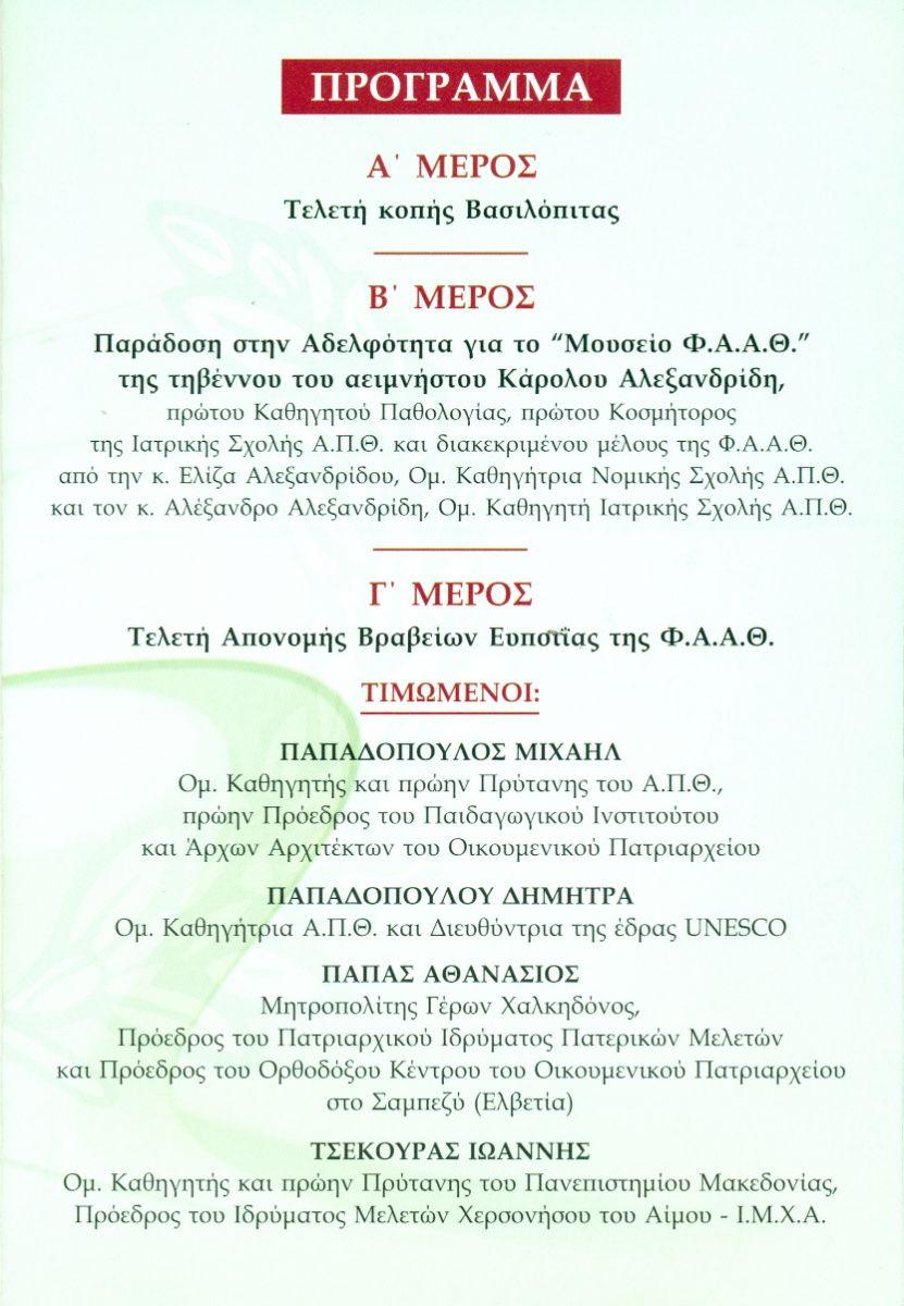– 6 Φεβρουαρίου 2015 ΤΕΛΕΤΗ ΑΠΟΝΟΜΗΣ ΒΡΑΒΕΙΩΝ ΕΥΠΟΙΪΑΣ Φ.Α.Α.Θ. Αίθουσα Διαλέξεων Εταιρείας Μακεδονικών Σπουδών Πρόσκληση 01 02 Πρόγραμμα 01 02