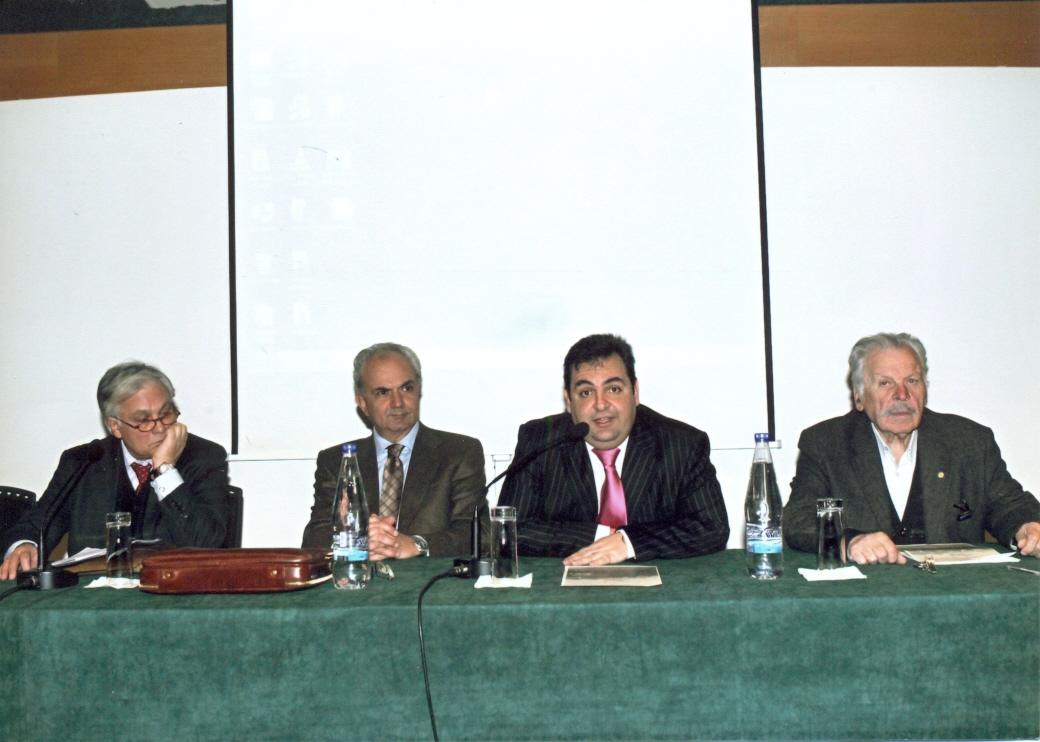 Στιγμιότυπο από την εκδήλωση. Διακρίνονται από αριστερά ο κ.Α.Καραθανάσης -Καθηγητής Α.Π.Θ., ο κ.Θ.Ι.Δαρδαβέσης, -Αν.Καθηγητής Α.Π.Θ. και Πρόεδρος της Φ.Α.Α.Θ., ο κ.Γ.Κωνσταντινίδης -Δικηγόρος και Πρόεδρος της συνεδρίας και ο κ. Μ.Κονδυλάκης -Δημοσιογράφος