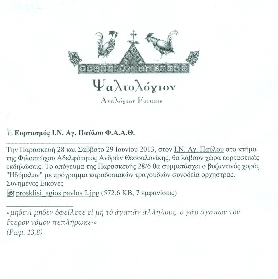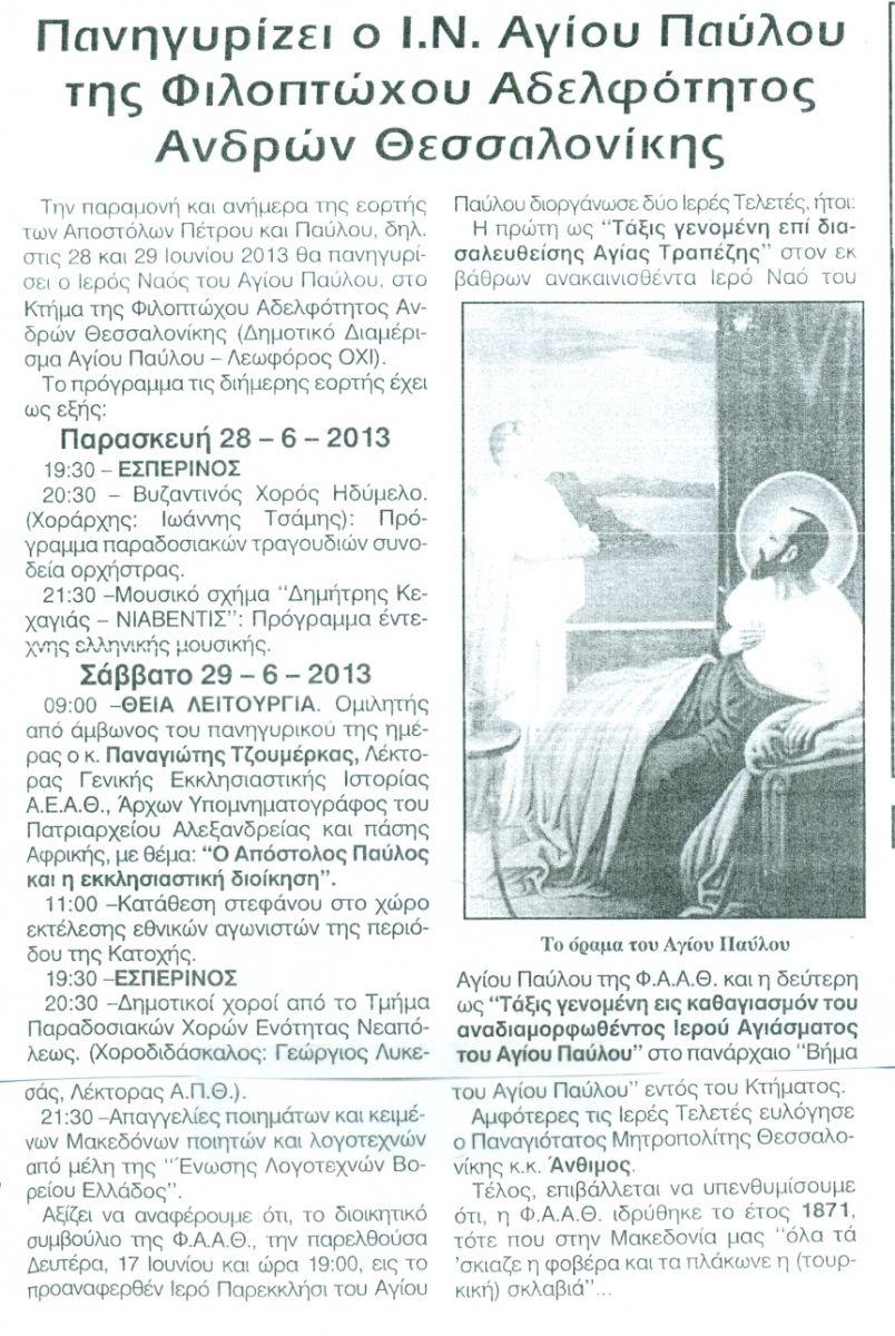 ΕΟΡΤΑΣΜΟΣ Ι.Ν. ΑΓΙΟΥ ΠΑΥΛΟΥ Φ.Α.Α.Θ.