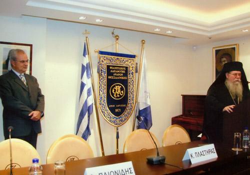 Ο Πανοσιολογιότατος Αχριμανδρίτης πατήρ Στέφανος, εκπρόσωπος του Παναγιοτάτου Μητροπολίτη Θεσσαλονίκης κ. κ. Άνθιμου, απευθύνοντας χαιρετισμό στην εκδήλωση