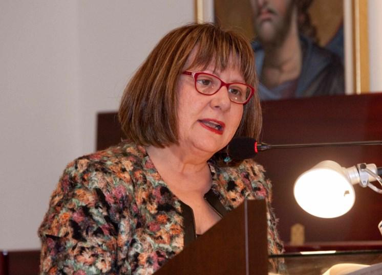 Η κ. Τιτίκα Αρβανιτάκη από το Ίδρυμα Υδρία, απαγγέλοντας ποιήματα της κ. Ταπακτσόγλου – Μπούλη