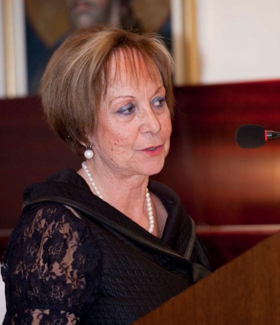 Η κ. Ελένη Βεζύρογλου, Γεν. Γραμματέας της Ε.Λ.Β.Ε. απαγγέλοντας ποιήματα της κ. Ταπακτσόγλου – Μπούλη