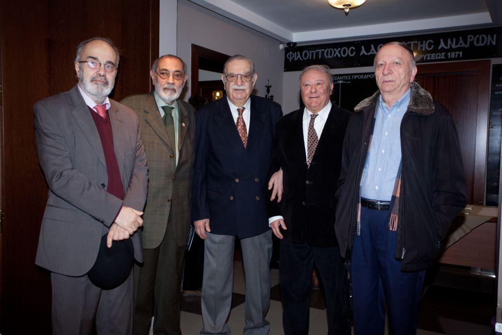 Ο κ. Κωνσταντίνος Νίγδελης -Εκπαιδευτικός – Συγγραφέας και Πρόεδρος του Μουσείου Προσφυγικού Ελληνισμού, ο Πρόεδρος της Φ.Α.Α.Θ. κ. Λεωνίδας Παπαδόπουλος, ο κ. Αντώνης Δούκας -Συγγραφέας, ο κ. Πάρις Βορεόπουλος -Εκπαιδευτικός – Συγγραφέας, και ο κ. Δημήτριος Μπουκόνης -Πρόεδρος της Αμφικτυονίας Ελληνισμού