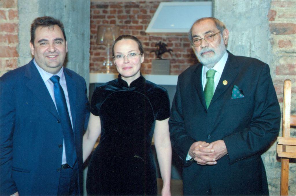 Ο Πρόεδρος της Φ.Α.Α.Θ. Λεωνίδας Παπαδόπουλος με τον Γεν. Γραμματέα της Αδελφότητος Γεώργιο Κωνσταντινίδη και την καλλιτέχνιδα Pelageya Dianova μετά το πέρας του ρεσιτάλ