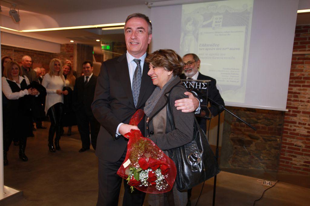 Ο Επίτιμος Πρόξενος της Κύπρου στη Θεσσαλονίκη κ. Αντώνιος Μανδρίτης και η επιμελήτρια της έκθεσης Ειρήνη Μοσχόβου